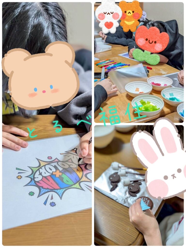 室内では編み物、お菓子作り、セロハンを使ったステンドグラスなど沢山の事に挑戦しています☺️👍